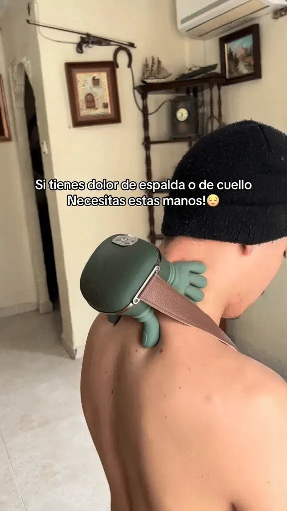 Funciona aplicando presión y movimientos que simulan el masaje de manos reales, ayudando a relajar los músculos, aliviar la tensión y disminuir la sensación de dolor en zonas como cuello, hombros, espalda, brazos y piernas. Solo necesitas unos minutos para empezar a sentir alivio.
